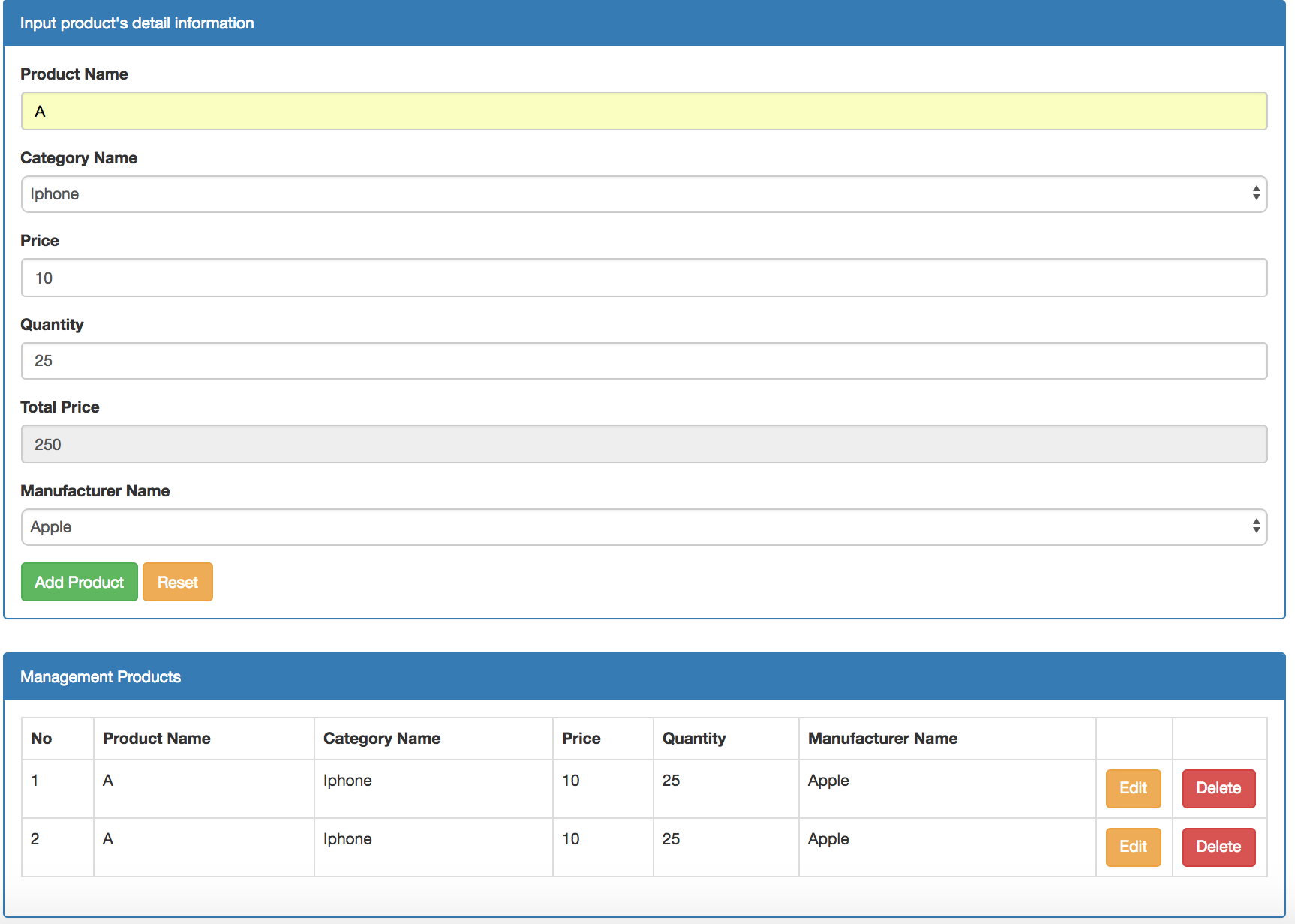 Bài tập - Quản lý sản phẩm bằng javascript - lập trình javascript