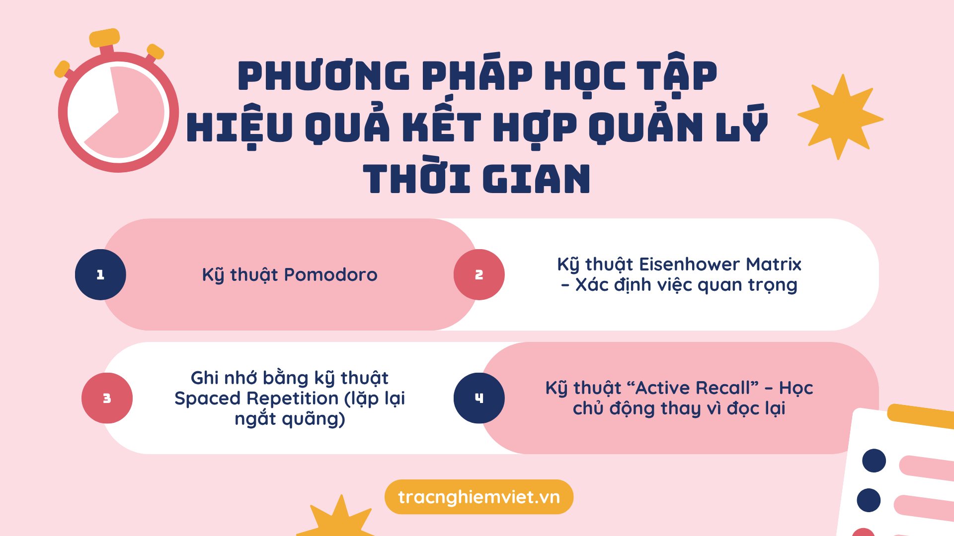Trong bài viết này, chúng ta sẽ cùng tìm hiểu phương pháp quản lý thời gian hiệu quả mùa thi cử, giúp bạn không chỉ học tập năng suất hơn mà còn giảm căng thẳng, cải thiện sự tập trung và tận hưởng quá trình học một cách tích cực.