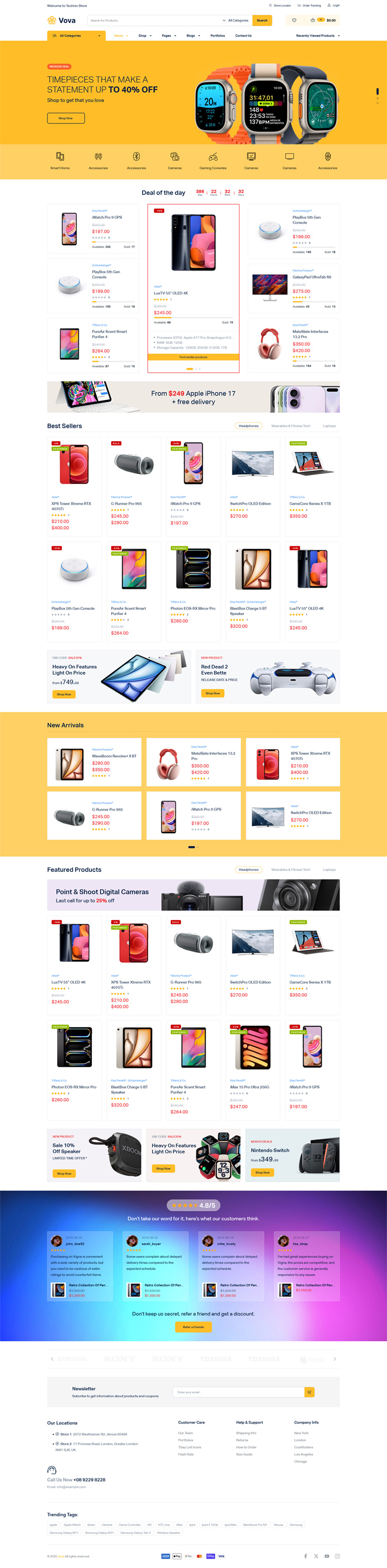 Vova là một giao diện hiện đại và phong cách, được thiết kế dành riêng cho các cửa hàng điện tử, cửa hàng công nghệ và nhà bán lẻ sản phẩm số muốn xây dựng sự hiện diện chuyên nghiệp trên nền tảng trực tuyến một cách dễ dàng. Với phong cách thiết kế sạch sẽ và hiện đại, Vova tạo ấn tượng mạnh mẽ về mặt thị giác đồng thời giữ trọng tâm vào sản phẩm của bạn. Bố cục được xây dựng hợp lý nhằm làm nổi bật các sản phẩm nổi bật, chương trình khuyến mãi và danh mục theo cách trực quan, hấp dẫn khách hàng.