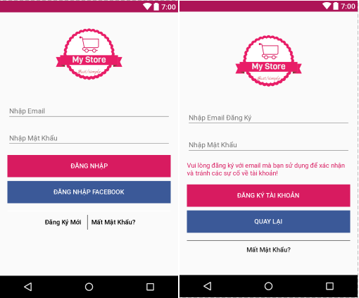 - Nhấn vào đăng nhập hoặc đăng ký thì hiện Dialog thông tin đã nhâp. Chưa cần làm chuyển màn hình.