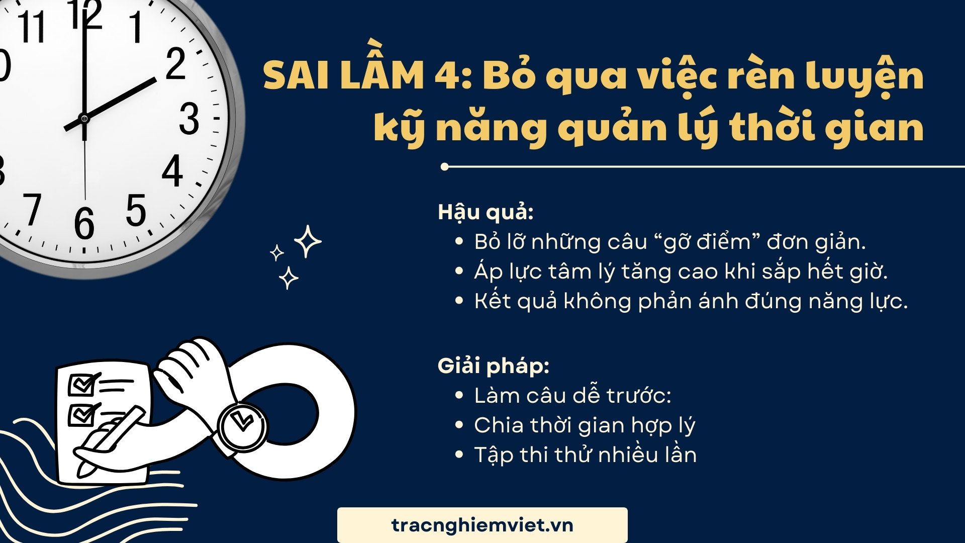 Đặt thời gian giới hạn: Thực hành làm đề trong 60–90 phút như thi thật để rèn tốc độ.