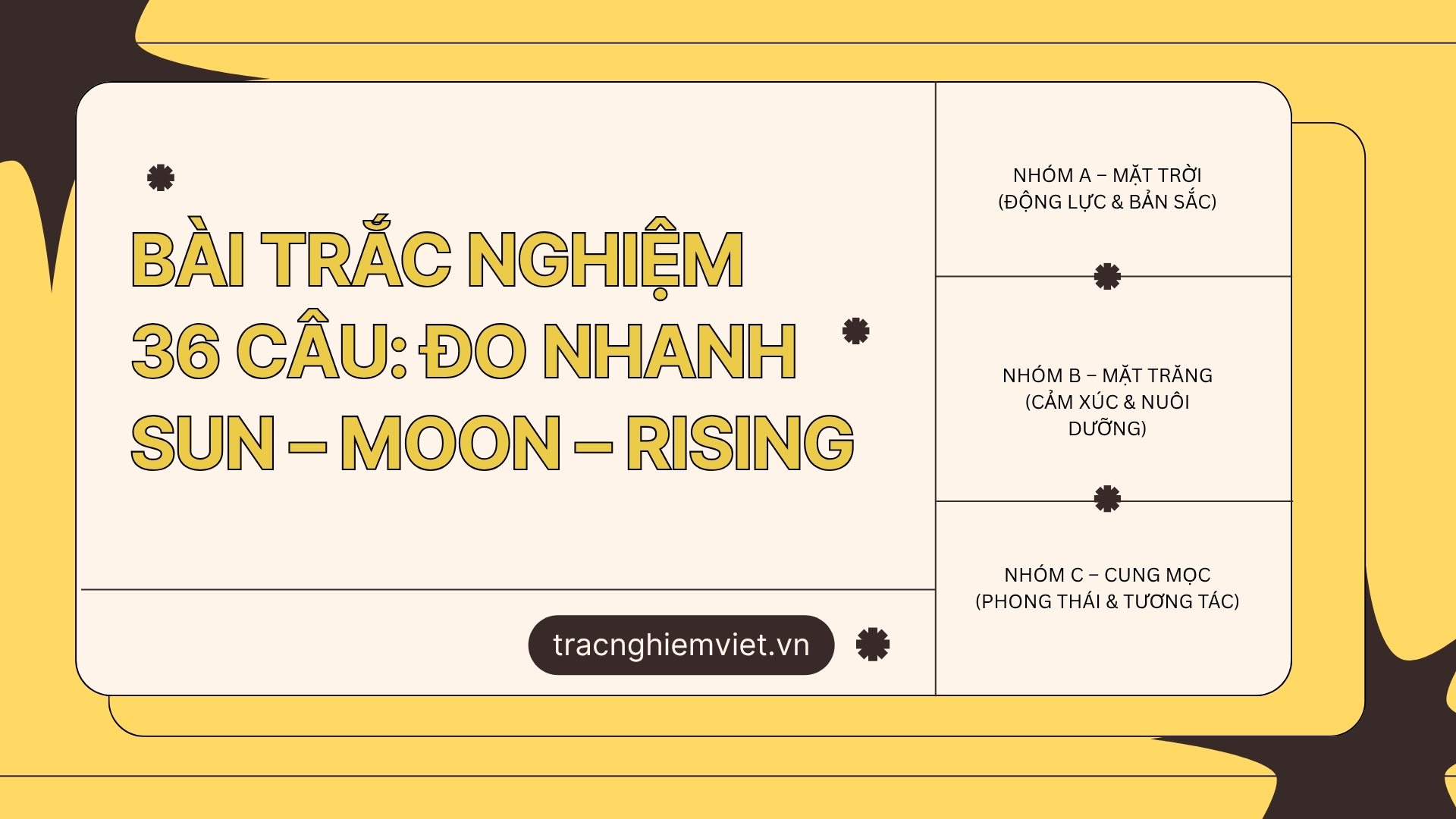 Vì sao người bạn thân của bạn cực kỳ quyết đoán khi ra quyết định nhưng lại dễ chùn bước khi bị góp ý? Tại sao có người nói chuyện cuốn hút ngay lần đầu gặp, còn bạn thì cần thời gian để “ấm máy”? Đằng sau những khác biệt ấy là mẫu hình tính cách: cách ta suy nghĩ, cảm nhận, hành động, phản hồi trước thế giới. Nhiều người chọn nhìn những mẫu hình này qua lăng kính chiêm tinh học – một ngôn ngữ biểu tượng dùng vị trí Mặt Trời, Mặt Trăng và “cung Mọc” (Ascendant) để mô tả xu hướng tự nhiên của mỗi người. Khi được thiết kế đúng, trắc nghiệm cung hoàng đạo có thể là chiếc gương thú vị để soi lại bản thân: điểm mạnh, điểm mù, động lực, cách ta yêu – hợp tác – làm việc.